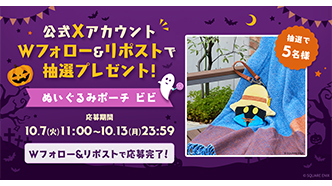 Wフォロー&リポストで、『ファイナルファンタジーIX』の「ビビ」のぬいぐるみポーチが抽選で5名様に当たる!ハロウィンプレゼントキャンペーン