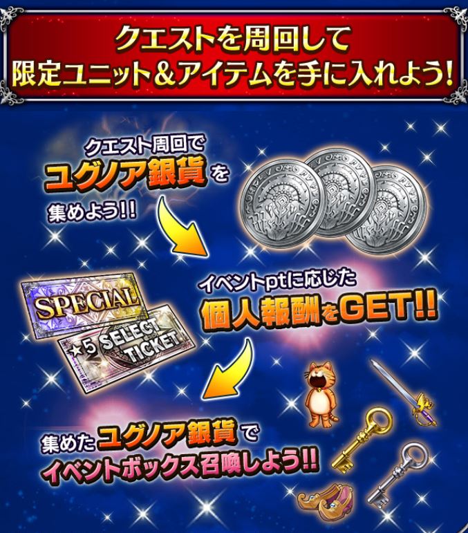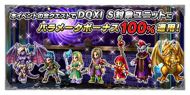 また、今回新たに登場するDQXI Sユニットたちを本イベントのクエストに連れていくことで、「ユグノア銀貨」の獲得量がアップします。さらに、これらのユニットたちは本イベントの全クエストでパラメータボーナスも付与されますので、イベントを有利にすすめることができます。