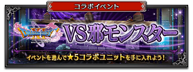 コラボイベント「VS邪モンスター」を開催中です!クエストを周回して手に入る「ユグノア銀貨」を集めると挑戦できる「VS邪モンスターイベントボックス召喚」では限定装備やクラフト素材など豪華報酬が手に入ります。