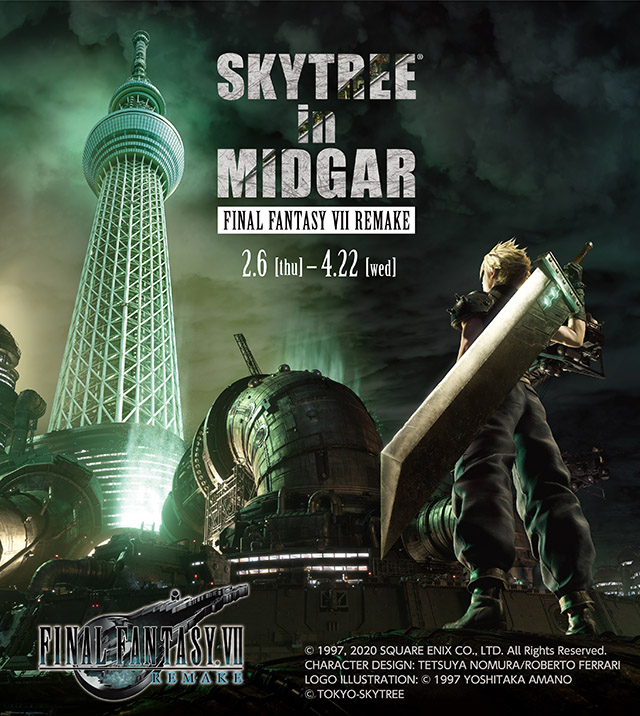 2月6日(木)より東京スカイツリー®にて、『ファイナルファンタジーVII リメイク』とのコラボイベントが開催!オリジナル映像の上映や展示、カフェやグッズの販売などイベント限定コンテンツが盛りだくさん!ぜひお誘い合わせの上、ご来場ください!