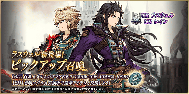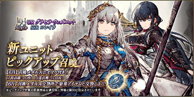 6月1日(月)0:00より、新ユニットが登場いたします。UR「グラセラ・ウェズエット」、UR「ラスウェル」、SSR「ロレイラ」が新たに登場となります。登場にともない、新ユニットピックアップ召喚を開催いたします。
