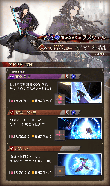 ラスウェルのメインジョブは新たなジョブ「グランシェルトの騎士」で登場いたします。グランシェルトの騎士は前衛の物理アタッカ―タイプで、防御貫通率アップ手段を複数所持しており防御が高い敵との戦いを有利に進めることができるジョブとなっています。
