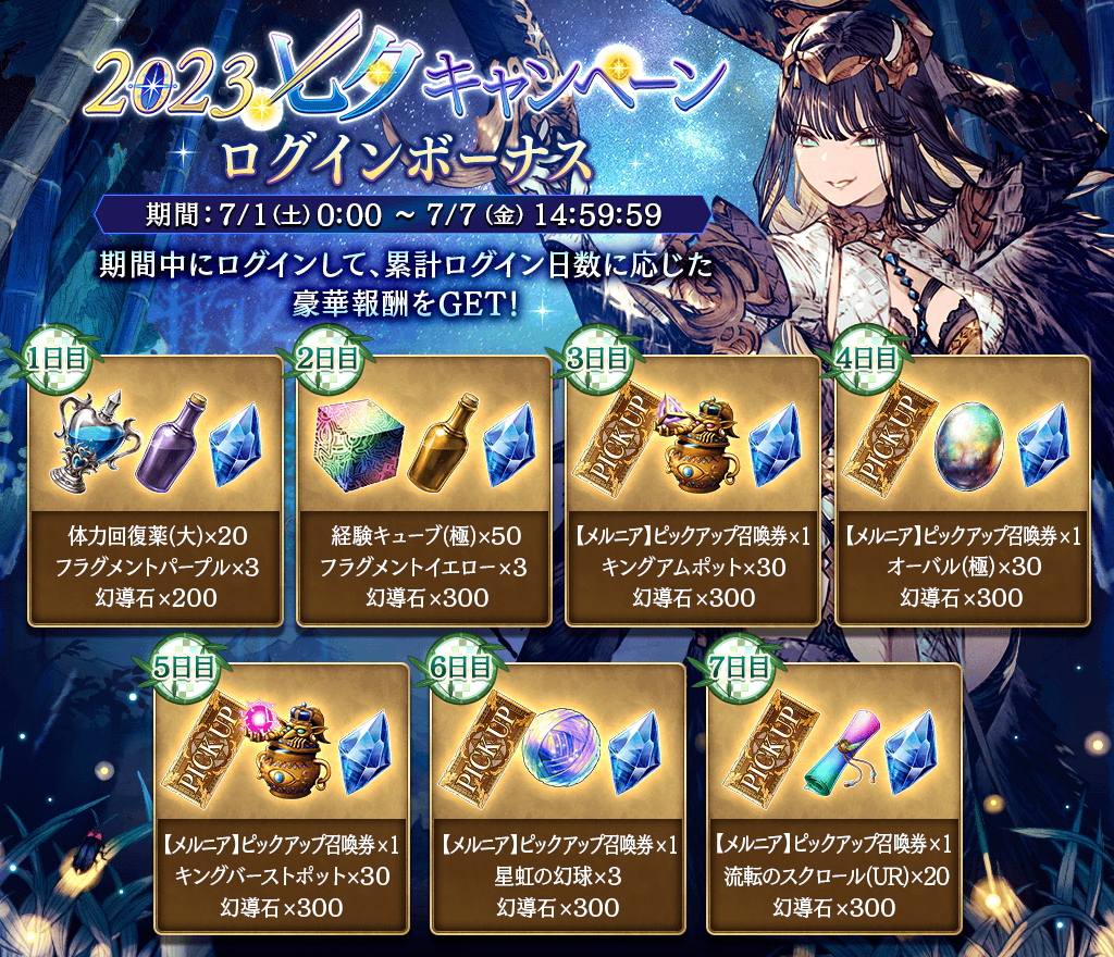 7月1日(土)から『1日1回限定の無料7連召喚』や