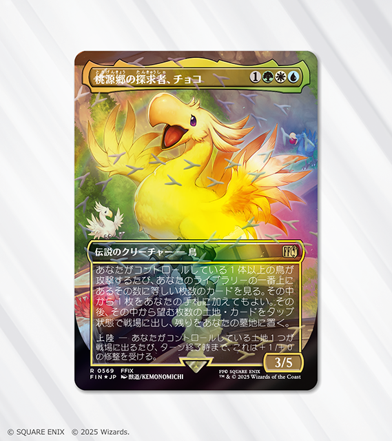 最初にご紹介するのは『マジック:ザ・ギャザリング——FINAL FANTASY』チョコボ・バンドルから出現する、《桃源郷の探究者、チョコ》です!