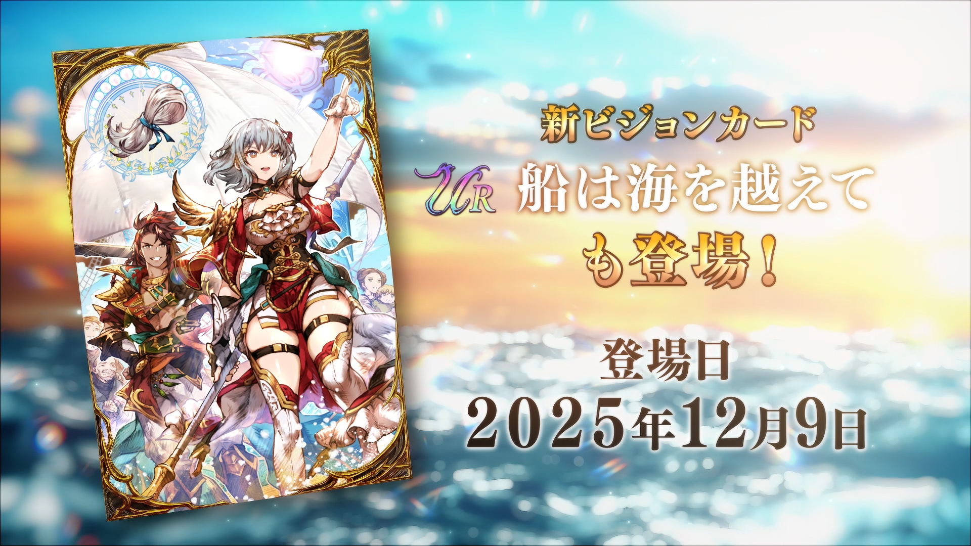 12月9日(火)より、ビジョンカード「船は海を越えて」の登場が決定いたしました。新ビジョンカードを対象とした各種ピックアップ召喚も同日より開催を予定しております。