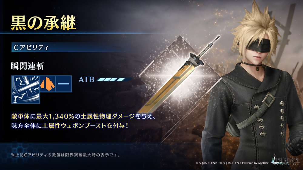 期間中、クラウドが装備可能な新たなコラボ武器「黒の承継」の出現率が上昇しているガチャを開催!