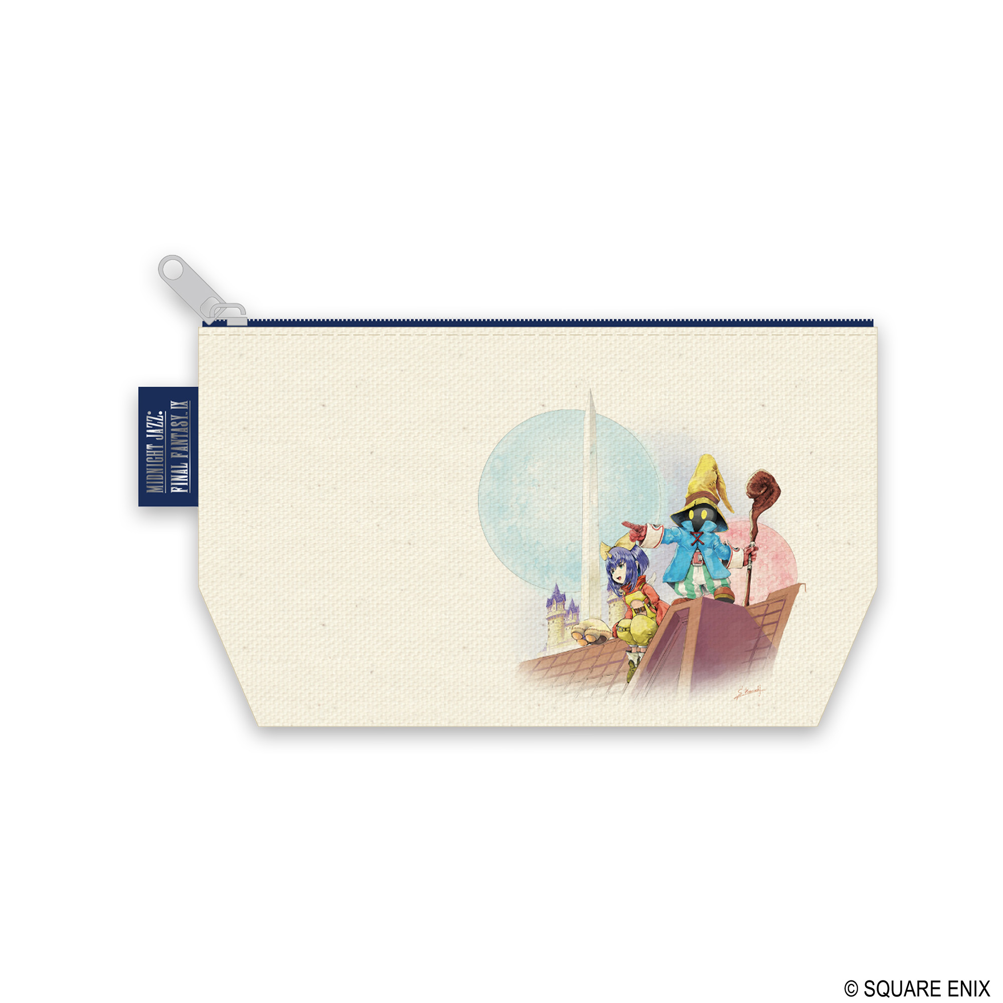 『ファイナルファンタジーIX』のビビとエーコが夜をのんびり過ごすイラストがデザインされたポーチ。