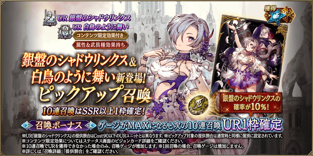 ■銀盤のシャドウリンクス&白鳥のように舞い新登場!ピックアップ召喚
