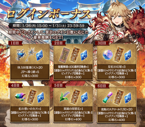 【銀盤のシャドウリンクス&白鳥のように舞い】ピックアップ召喚券や、最大2,000個の幻導石など、豪華アイテムがログインするだけで獲得できます。