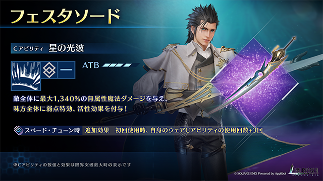 期間中、ザックスが装備可能な新たな武器「フェスタソード」の出現率が上昇しているガチャを開催!