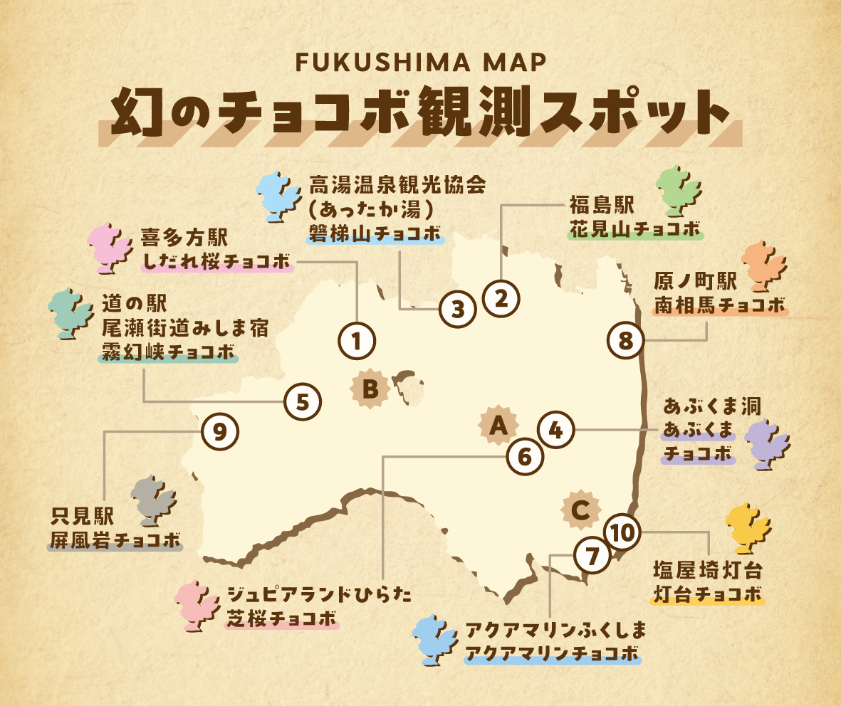 本企画は、人気タイトル「FINAL FANTASY」のキャラクター“チョコボ”と連携した新たな周遊型企画です。福島の自然・文化・地形などをモチーフにした10種類のオリジナルチョコボが登場し、ふくしまDC向けに制作したポスターの幻想的な世界観とリアルな旅をつなぐ、新しい観光体験をお楽しみいただけます。