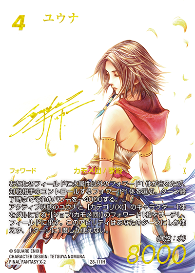 毎回高い人気を誇るスペシャルカードは、野村哲也氏が描いた【28-111H】ユウナを収録。野村氏のサインが箔押しされており、コレクターの注目を集めるセットとなっています。