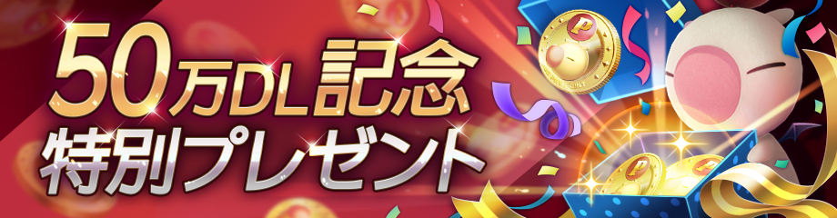 『ディシディア デュエルム ファイナルファンタジー』の50万ダウンロード突破を記念して、1,000モグPayと50,000グロウエッグを全てのプレイヤーの皆さまにプレゼントいたしました。これからも『ディシディア デュエルム ファイナルファンタジー』をよろしくお願いいたします。