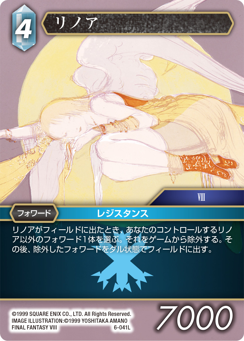 ブレイクゾーンから除外する3枚は【カテゴリ(VIII)】であれば召喚獣やモンスターでも構わないので、それほど難しくないでしょう。【カテゴリ(VIII)】のカードは今回の「発見の旅路」にも何枚か収録されているので、なおさら使いやすいはずです。奪ったフォワードのコントロールを維持するにはさらにCPを支払う必要がありますが、支払わない場合でもそのフォワードはブレイクゾーンに置かれるので、少なくともフィールドから除去することはできます。一度コントロールを奪っているので、そのフォワードが持つ『ブレイクゾーンに置かれたとき』などに発動するオートアビリティも自分のものとして発動させることができます。【6-041L】リノアなど同じ【カテゴリ(VIII)】の中にも相性のよさそうなカードがありますので、ぜひ【27-092H】アルティミシアを使ったデッキ構築にも挑戦してみてください。