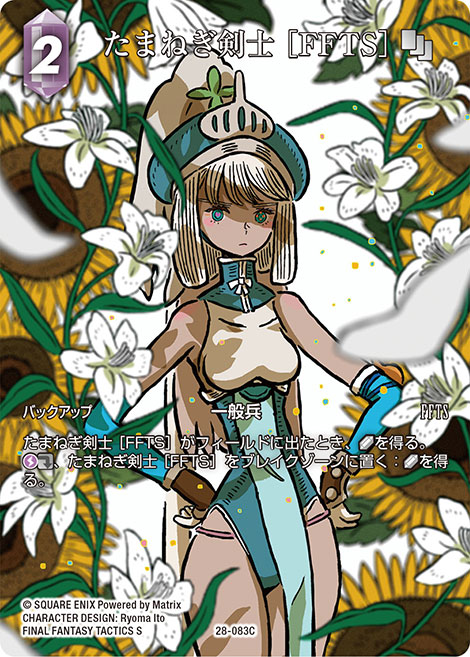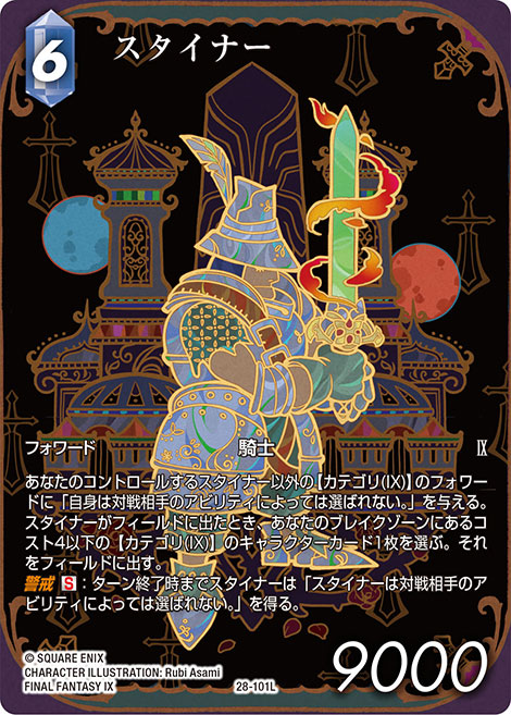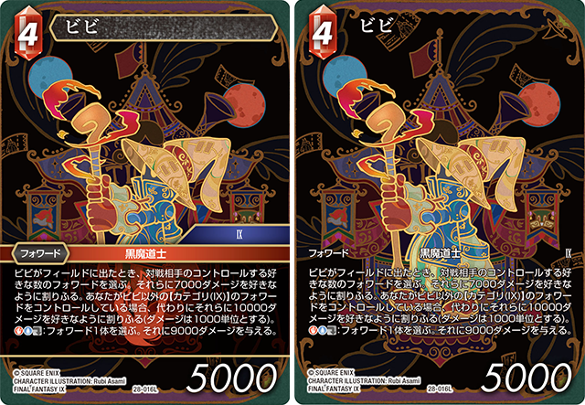 『FFTCG』イラストレーター陣によるオリジナルの描き下ろしカードを、単にゲームに使用するカードとしてだけでなく、「一枚のカードサイズのイラスト作品」としても見てもらえるようにと設計された特別なカード。パックを開けたときのわくわく感や驚きをお楽しみください。